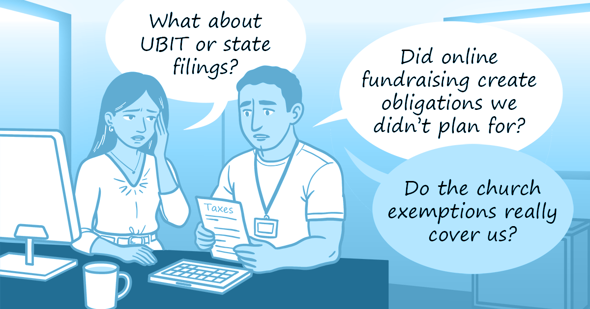Churches may still need to report UBIT and provide certain state filings. Churches may also be subject to some IRS rules, such as those forbidding private benefit.